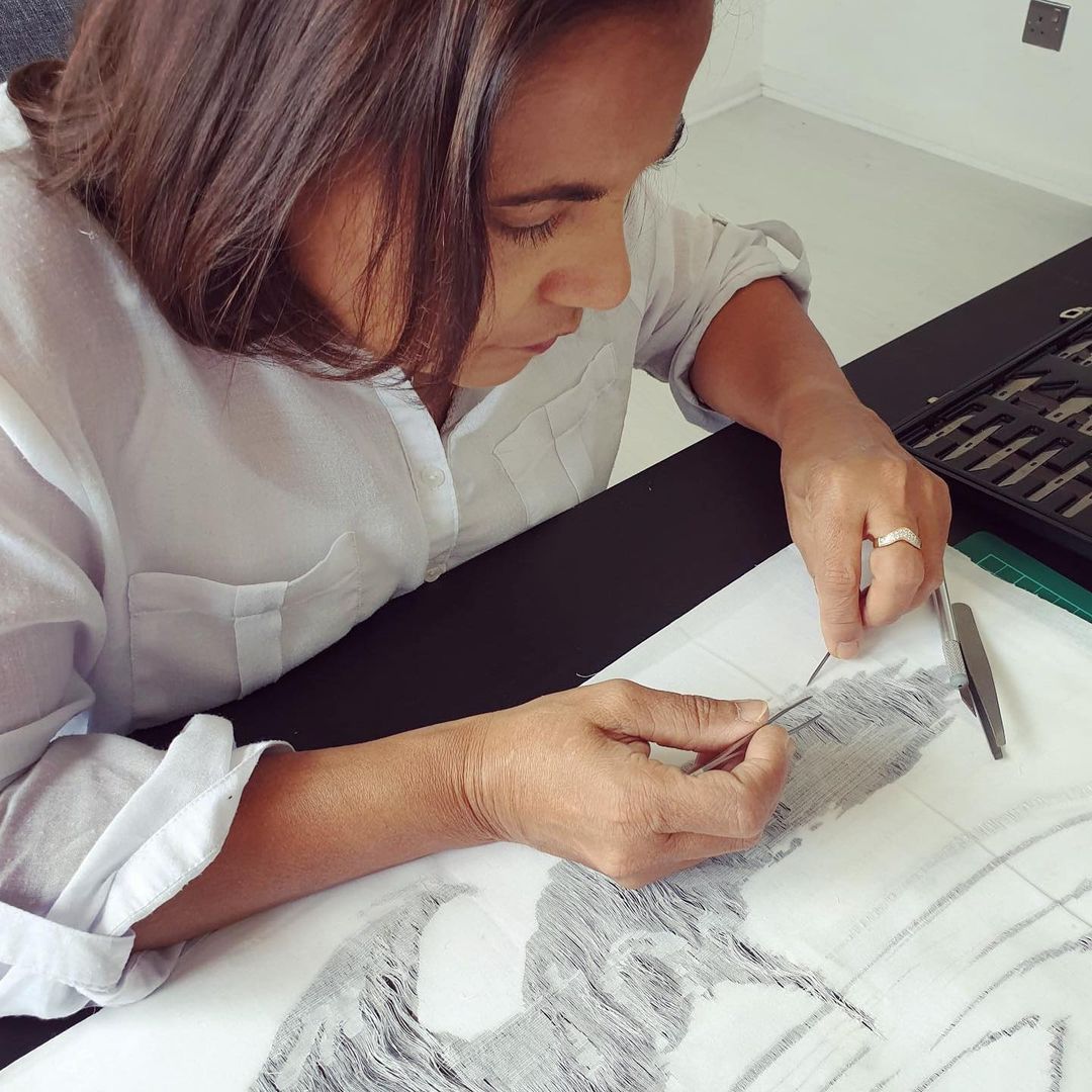 The process of wax resit then dye, can be repeated many times over, to create complex multi-coloured designs.